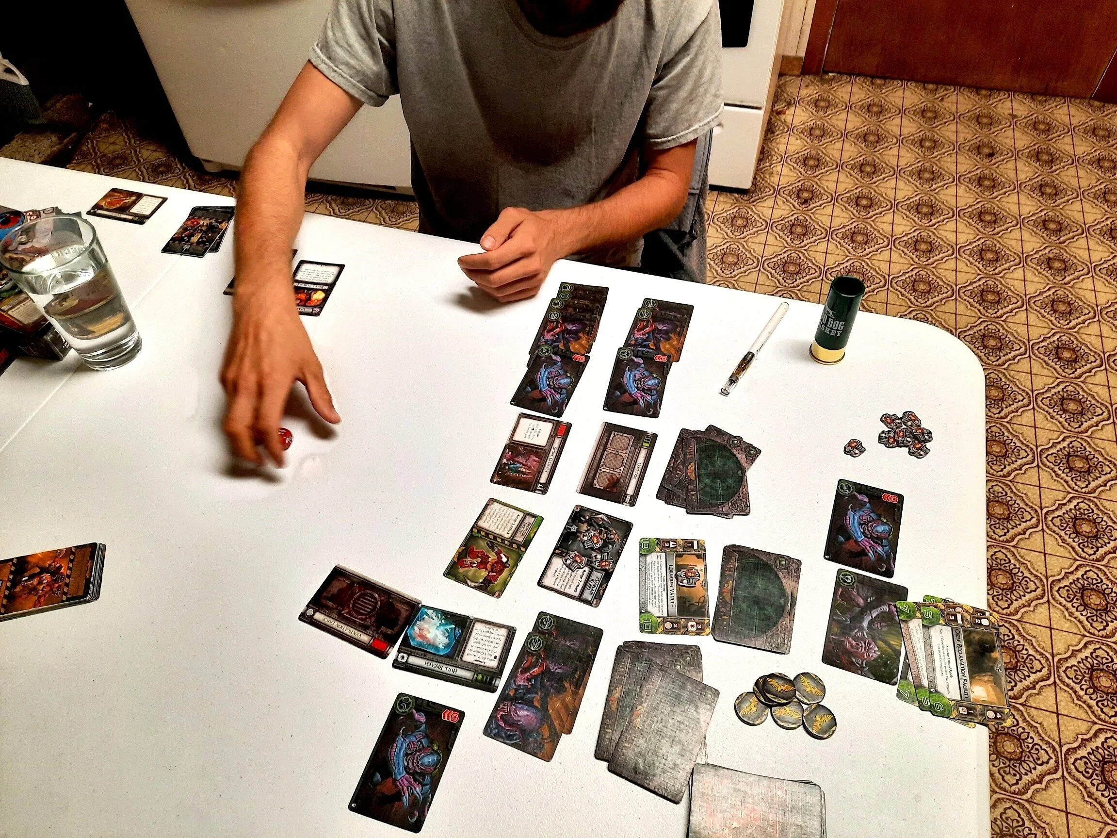 Another memory: Late in another game. I’d just gone to a new location, at which point you’re supposed to draw a card from that location, read the flavor text, and resolve the encounter. And nobody was listening. I was just wandering around the board on my own. It sucked.