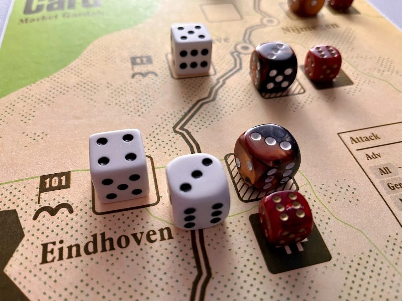 This is spiced up by the fact that outside of the 30 Corps rolling through town, there’s pretty much zero help coming for the 101st in Einhoven, the 82nd in Grave or the 1st Airborne in Arnhem. Each have to attack enough to generate a table result that flips their assigned town to U.S. control. The 30 Corps can’t get in otherwise.