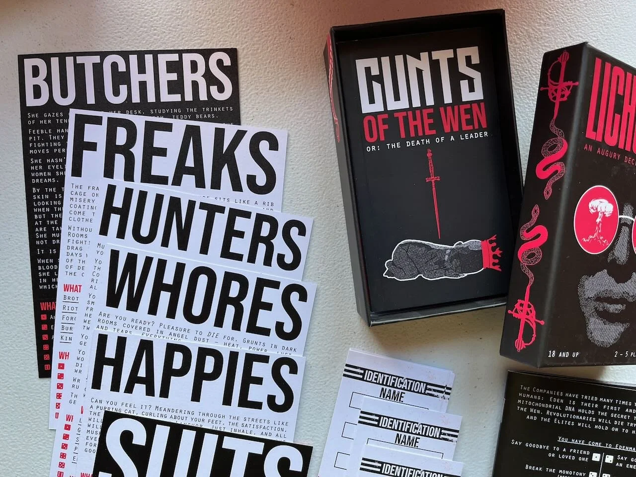 A Southern Gothic card-driven and GM-less roleplaying game set during the American Civil War. Only one of you is going to live. Discussed in Episode 96: Carolina Death Crawl RPG (Lemonade Beer Punch Sold Separately)
